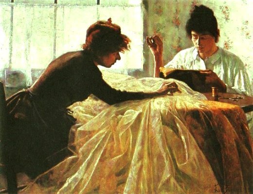 Ann and Elizabeth were daughters of Thomas Mallinder 1837-1878 paternal line. They did not marry and their occupation was dressmakers. The picture depicts two dressmakers working from their home in the 1880s and probably reflects how Ann and Elizabeth spent much of their time. Ann was registered in the 1893 Kelly's Sheffield Trade Directory at 45 Alderson Road in Sheffield.
