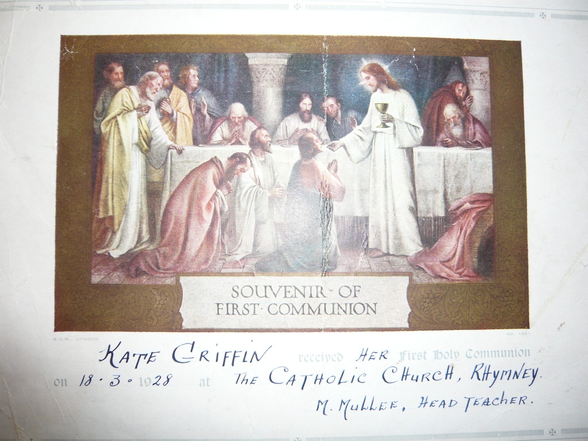 The picture of Kathleen is probably about the age of ten. This is her First Communion certificate from 1928. In 1933, aged 13, Kathleen was sent to work as a domestic servant at Cranleigh School for boys in Surrey. Mum told me how the Great Depression dreadfully impacted her village in Wales; the money she earned was sent home to her mother and father in Wales. Her family moved from Wales to 63 Mayfield Road, Northfleet in Kent for employment and economic reasons. During the second world war mum was an ambulance driver. In 1945 she married and moved to Chesterfield to be with Bernard in the family business. The death certificate records Kathleens's death 22nd June 1994 at 4 Ivy Close, Whitehill Lane, Gravesend. Her cause of death was primary Carcinomatosis and secondary Breast Cancer