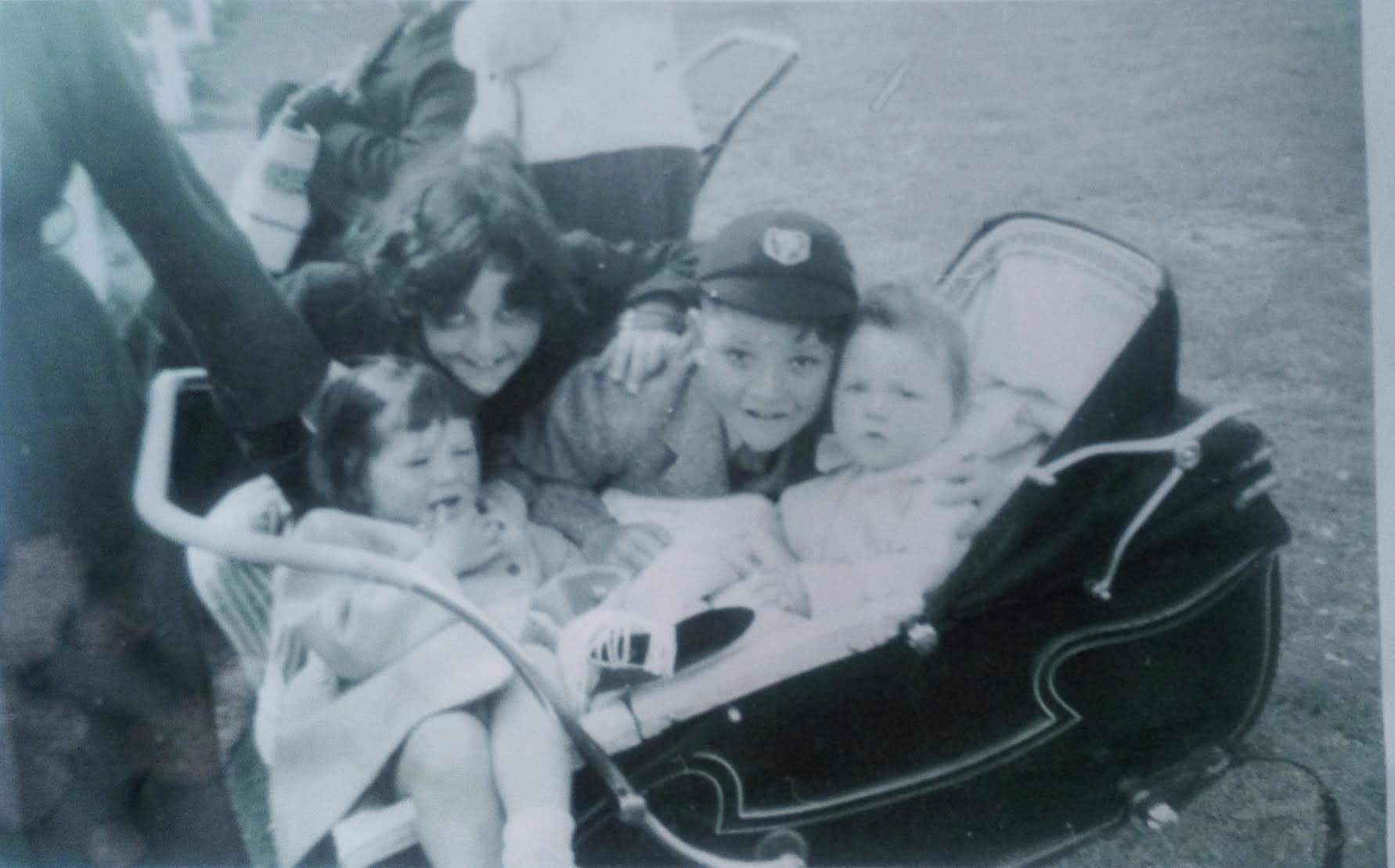 The photo was taken about 1960, my eldest sister Elizabeth, my brother Bernard, my sister Margaret and me in the pram.