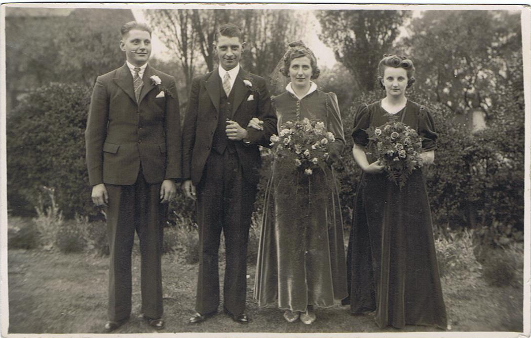 Bernard married Kathleen Griffin in 1945 at Northfleet Church in Kent, marriage register ref: Vol. 2 a Page 3970. From left to right, John Griffin (father of Kathleen), Alice Maud Mallinder nee Smith (mother of Bernard), Bernard, Kathleen, Josephine Griffin (sister of Kathleen), William John McCarthy (step brother of Kathleen), Hannah Elizabeth Griffin (formely McCarthy nee Davidge, mother of Kathleen).