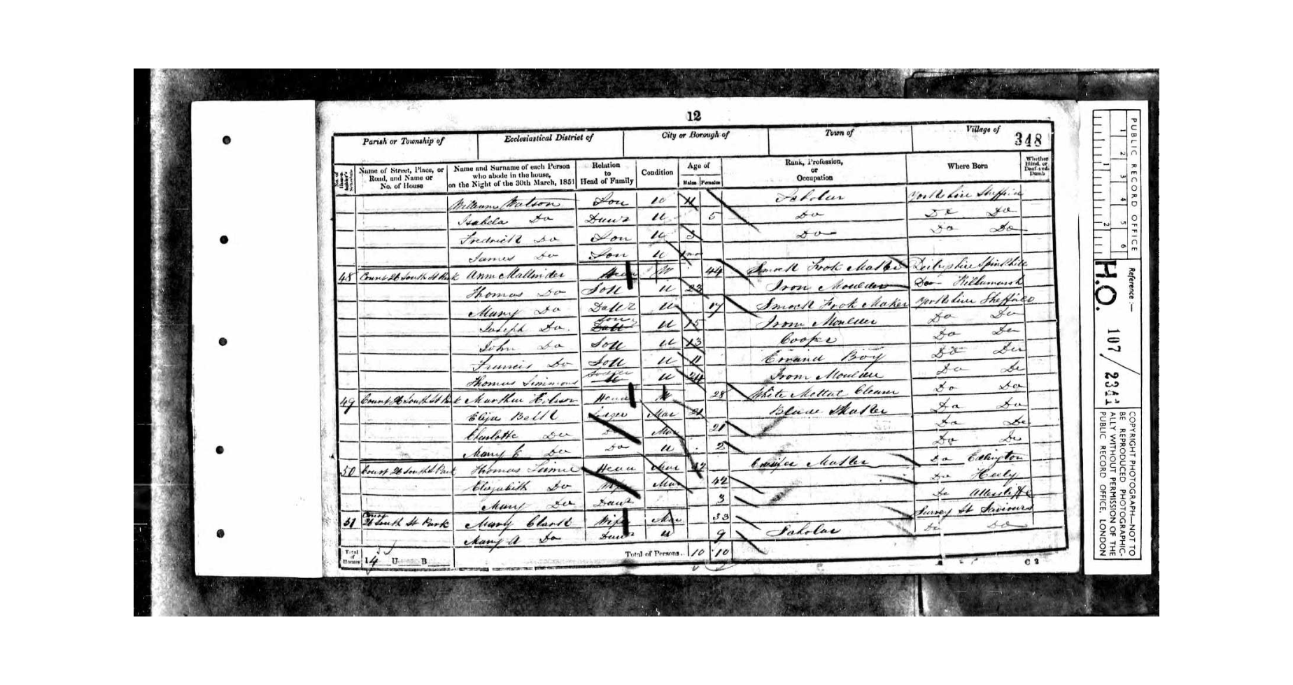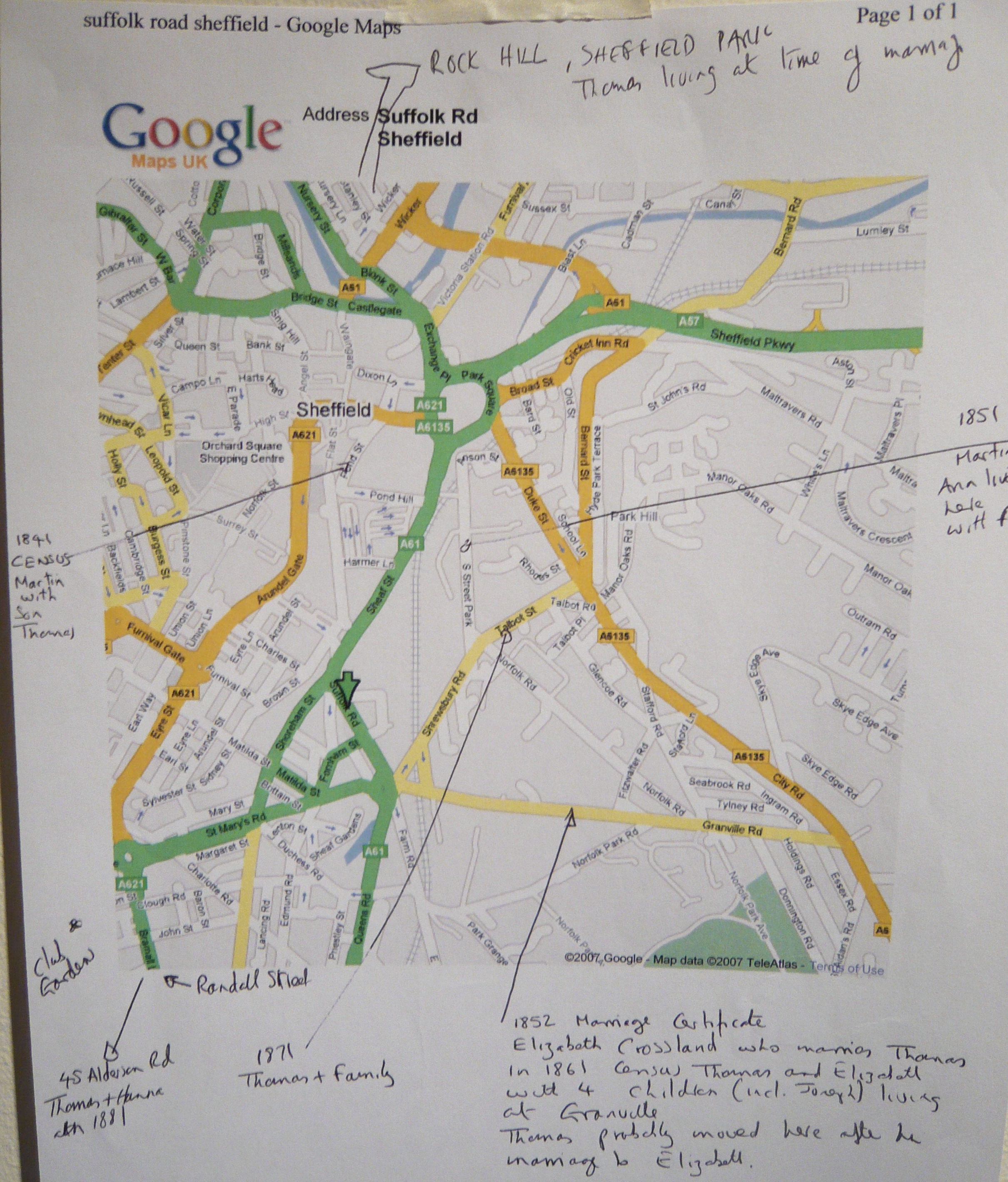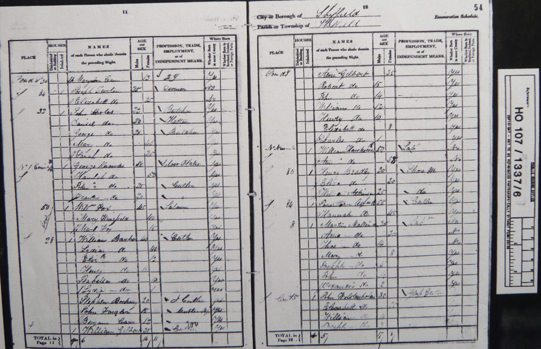 In 1841 Martin was listed as 35 years old. He was recorded as living at Pond Street in Sheffield with his wife Anne and five children. His occupation was recorded as "lab"; a labourer. In the 1841 census, the age of persons over 15 was supposed to be rounded down to the nearest multiple of 5, hence Martin is recorded as 35. Martin, his wife Ann and first born son Thomas (Paternal Line) are shown as not being born in the county of Yorkshire. The other five children were all born in the county of Yorkshire.
