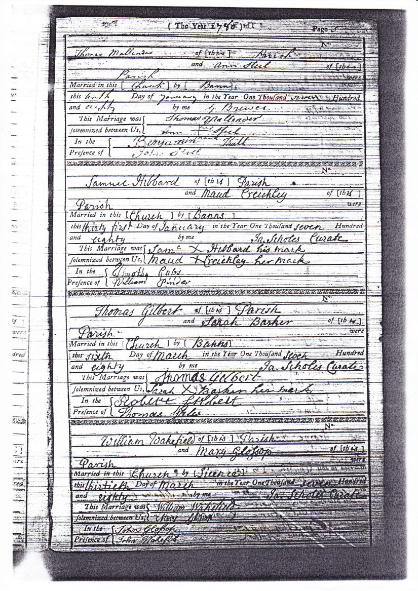 Thomas Mallinder married Ann Steel on 10th January 1780 at Eckington Parish in Derbyshire.