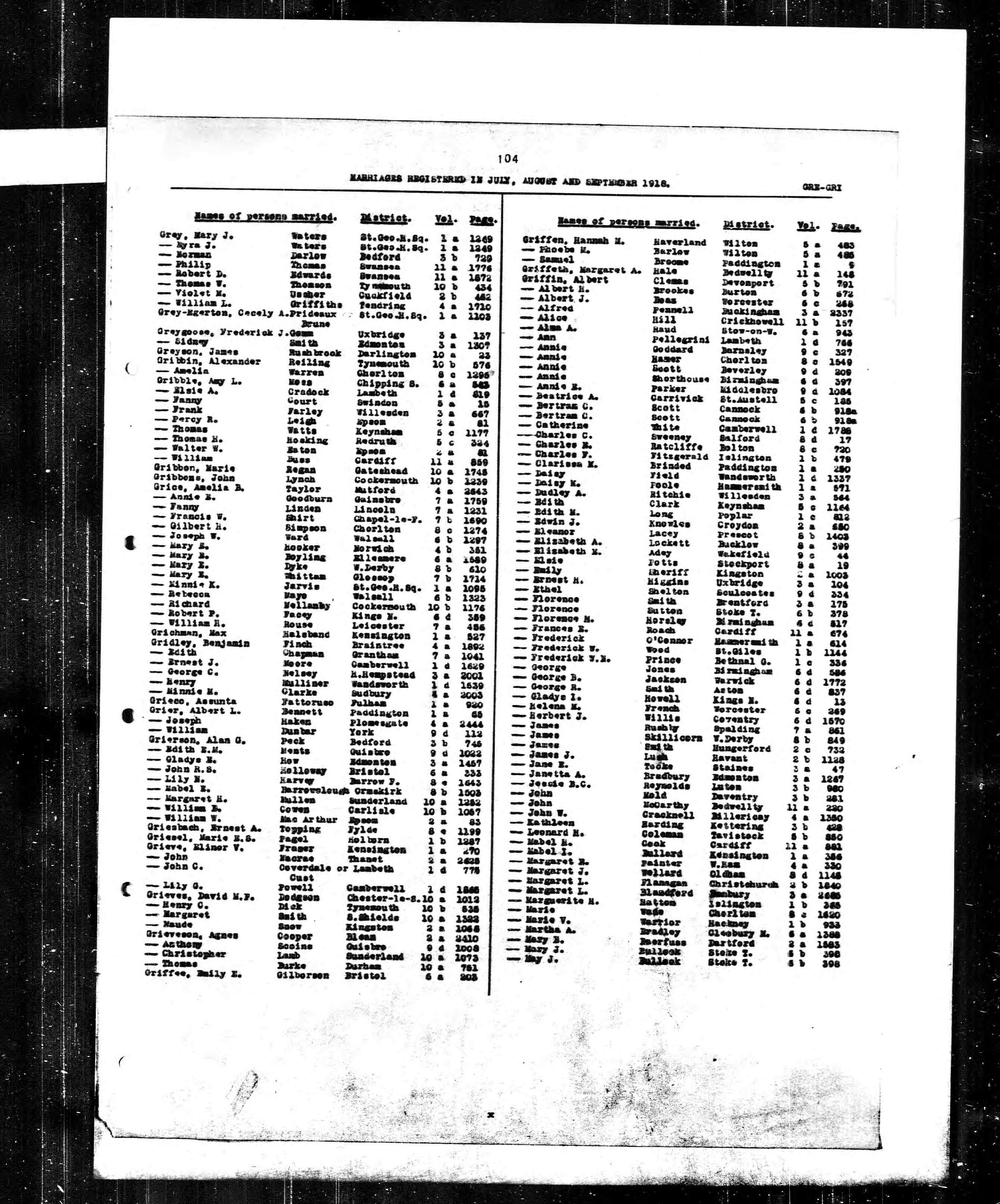 Elizabeth had seven children with her first husband. Six children from her first marriage were alive when she married John Griffin. Elizabeth (my Nana known as Hannah) and John (my grandad) had eight children together (Margaret b. jan 1919 d. Jan 1919, Uncle Johnny b. 6 Oct 1919 d. 11 Dec 2009, My mum b. 9 Sep 1920 d. 22 Jun 1994 and named after John's mother, Mary b. Apr 1922 d. Jan 1938 who my mum spoke about dying as a young girl, Auntie Josephine b. 1924 d. , Uncle Laurence b. 12 May 1926 d. Dec 1997, Auntie Bridie b. 14 Jul 1929 d. Jun 2002 and Auntie Thersea b. Jan 1934 d. ). In total my grandmother Elizabeth Hannah had 15 children.