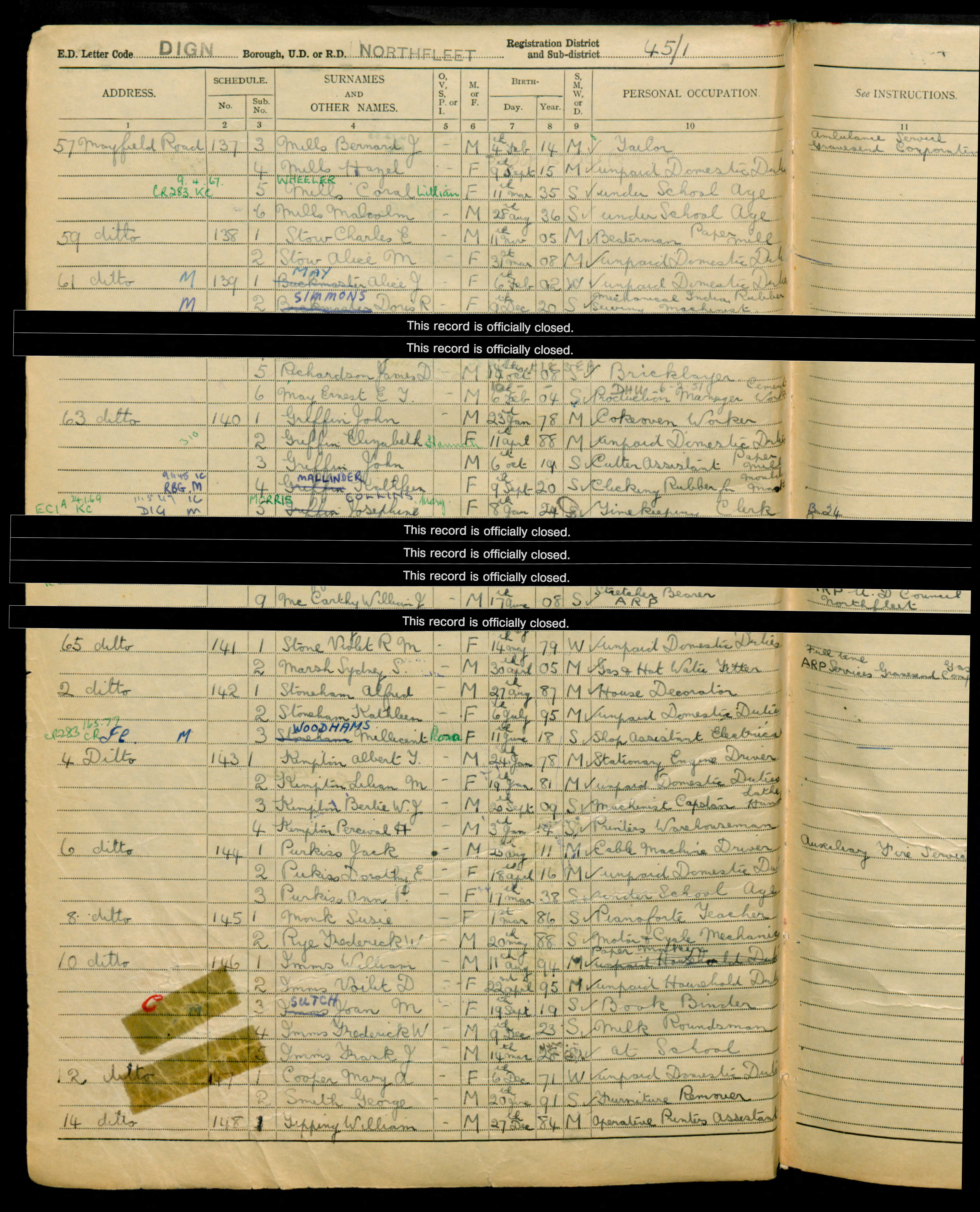 The 1939 register is a snapshot of the civilian population of England and Wales just after the outbreak of the Second World War. The record shows that John Griffin was living at 63 Mayfield Road, Northfleet, Kent. He was was born 23 Jan 1878 (1879 perhaps) and his occupation was a Cokeoven Worker. All the names on this record I knew as my uncles/aunts and mother. His eldest child is John Griffin (my uncle), born 6 October 1919; occupation is a Cutter Assistant at the paper mills. The paper mills were the Imperial Paper Mills that opened in 1911 and my father worked there from the 1960s till the mid 1970s.